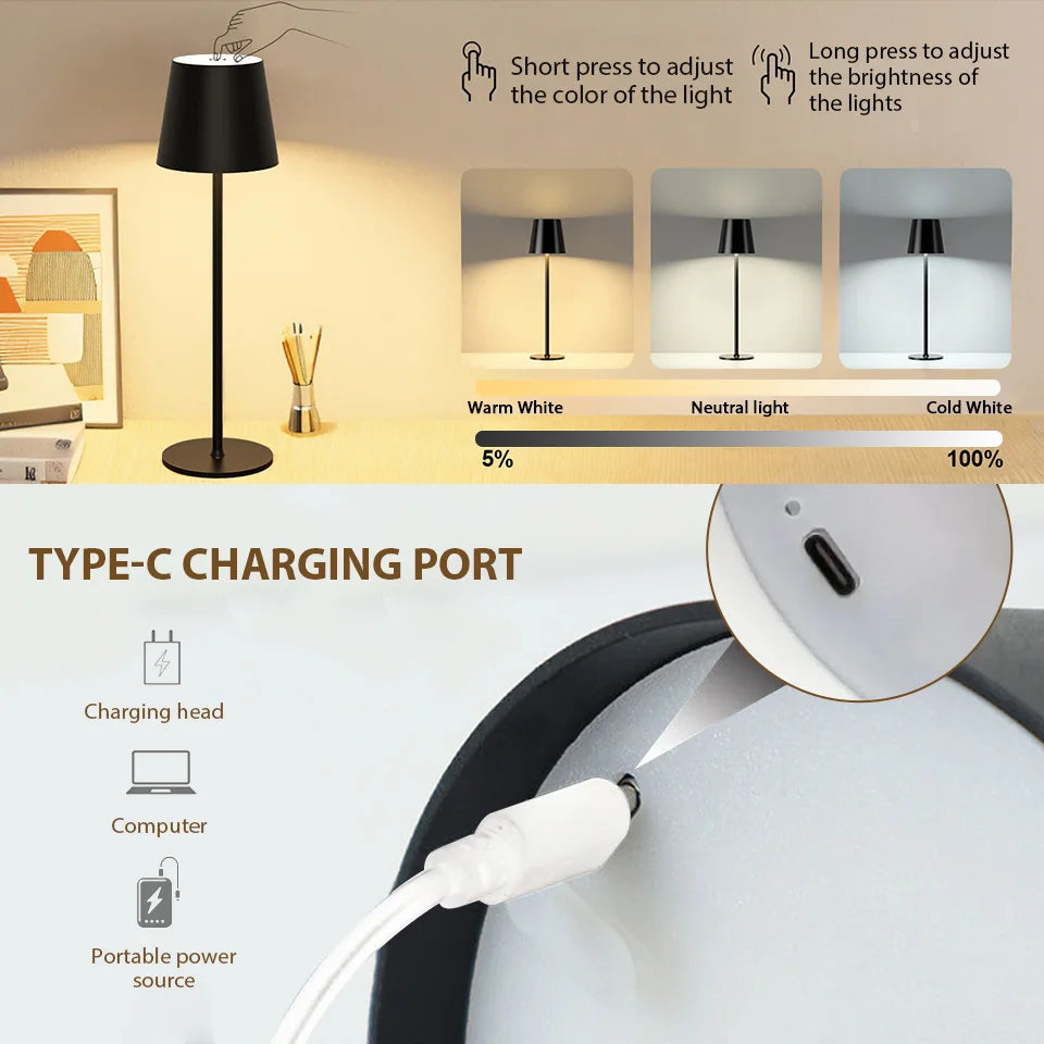 Kabellose Tischlampe mit Touch-Sensor – Wiederaufladbare LED-Nachtlicht für Schreibtisch, Lesen, Hotel, Bar, Restaurant, Schlafzimmer-Dekor